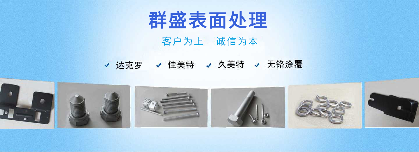 靖江市群盛表面處理有限公司,位于江陰長江大橋之畔靖江市城北園區(qū)山南路21號,成立于2007年3月。 公司引進了上海達克羅涂覆工業(yè)有限公司的全自動生產(chǎn)設備和溶液。技術人員曾多次在上海公司培訓,并得到該公司的技術支持。公司還配備了計量、理化檢測儀器和設備,以確保產(chǎn)品持續(xù)的品質(zhì)。公司的涂覆加工中心是質(zhì)量穩(wěn)定、設備優(yōu)良的達克羅、佳美特和無鉻涂覆加工基地。 公司現(xiàn)有六條自動流水生產(chǎn)線 ,月加工能力可達1000噸以上。憑借良好的生產(chǎn)設備和優(yōu)良的原料,賦予現(xiàn)場...